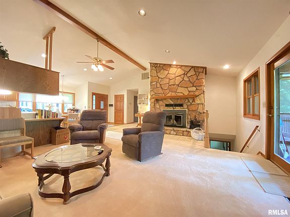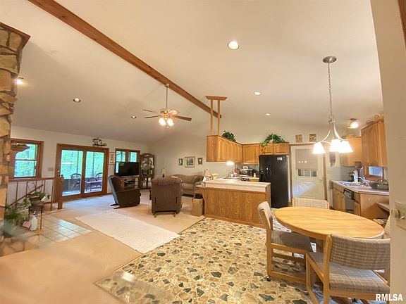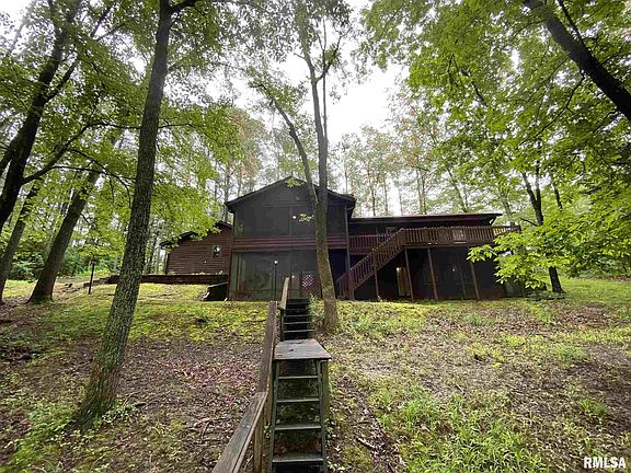 Waterfront lot tucked away in Spring Arbor Lake Subdivision with almost 2 acres of wooded land. HOA fees offer you access to the lake with beach, boating, swimming and fishing. Recent updates to include a new heat pump system, new gutters, and front drainage system. Enjoy open floorplan with large living room with cathedral ceiling, wood fireplace, attached kitchen, 2 bedrooms, 2 bath, and beautiful wooden doors. Basement has family room, rec room, bar, bedroom, bath, laundry, and unfinished storage room. Outside you will enjoy wildlife and great lake views from your deck off master bedroom or screened in porch off of living room. Basement level you have another screened in porch, beautiful yard, 2 car oversized attached garage, large asphalt circle drive, paved parking and boat dock. $220,000.00