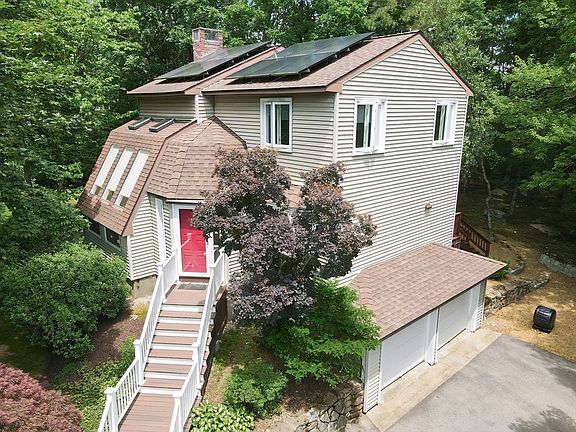 Nestled on an inviting Ashland cul-de-sac, this charming contemporary cape home exudes warmth. Located just minutes from major routes and the M.B.T.A. Station, it offers unparalleled convenience. The foyer welcomes you with a unique ambiance that immediately captivates. The open living, kitchen, & dining rooms seamlessly connect. A welcoming sunroom offers panoramic views of the wooded backyard and can be heated with a gas fireplace. The kitchen is a chef's dream, featuring ample workspace, marble countertops, a large island with a breakfast bar, and hardwood flooring. Three well-sized bedrooms are located on the top floor, providing comfort for everyone. Stay cool during the summer with the home's air conditioning. The lower level presents a spacious family room with laundry facilities & access to the two-car garage. Solar panels, owned by the homeowner, enhance the home's eco-friendliness. Make this great house your dream home. Don't miss this incredible opportunity—take action toda