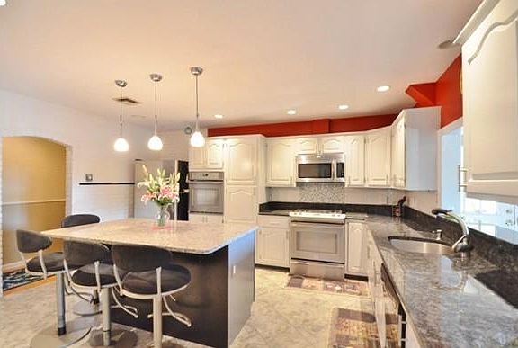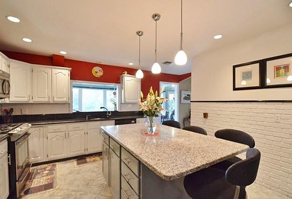 Step inside this exquisite waterfront property and you'll likely be surprised with the expansive space that this oversized ranch with a 2-car garage has to offer! The property is in move-in condition and has magnificent views of Flint Pond from many rooms in the home. Special features include a large gourmet kitchen with granite counters, two sunrooms offering plenty of space for entertaining, a large dining room and a fireplaced living room with hardwood floors, a master suite with an Ultra tub, walk in shower, a dual sink vanity and even more views of the lake! Outside you will find a backyard oasis with a large patio and private dock, as well as expansive perennial gardens. The basement is finished with a potential in-law apartment with kitchen and additional finished rooms with a summer kitchen, which can be used for additional guests or entertaining to complete this fabulous home!