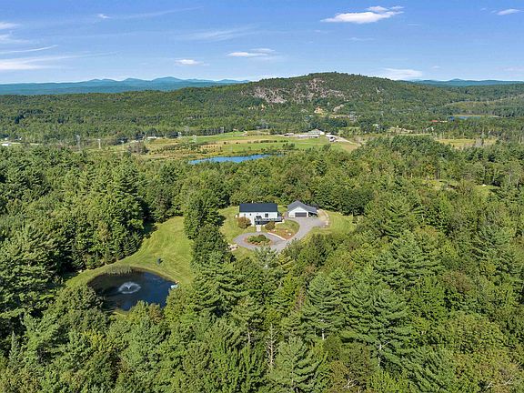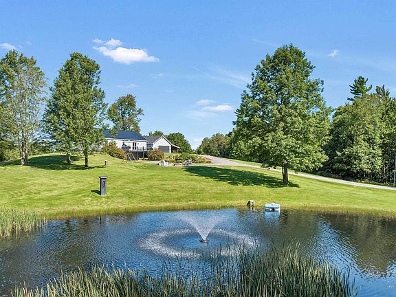 The colors are popping this Fall! Experience peaceful country living in this immaculate ranch with a walk out lower level on 16+ secluded acres in North Haverhill. 1,400 SF of first floor living space plus 1,000 SF more space on the walkout lower level A serene pond out front with a stone patio and fire pit, surrounded by wooded landscapes and featuring stunning mountain views, this home offers a tranquil retreat from the everyday hustle. The spacious ranch includes a new kitchen, a primary bedroom and bath, 2 other bedrooms, and a finished lower level providing comfortable and flexible living spaces. Gaze over the east facing pond and perennial flowers and shrubs with your morning coffee on the 10 x 36' "trex" deck. Enjoy end of the day nibbles and nips with the setting sun from the rear patio and fire pit. Perfectly set for quiet reflection and the sounds of silence! This property boasts a trail system for hiking, snow shoeing and exploring stream that meanders along one of the land's boundaries. A remarkable feature is the stand-alone oversized two-bay garage and lean-to offering extra space for vehicles, storage, and toys! With its combination of privacy, natural beauty, and practical amenities, this home is an ideal escape for those seeking a peaceful, nature-filled lifestyle. The location is private and secluded, but certainly not remote! Just minutes away from commuter routes, shopping, restaurants, conservation areas, skiing and more hiking! Make this one your own!