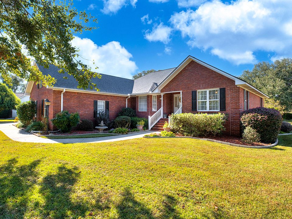 Beautiful 3 BR, 2 BA waterfront home overlooking South Lake w/ shared pier that provides access to Lake Marion(South Carolina's largest lake). Located in the heart of Wyboo Plantation on a custom .52 acre lot, this brick home has a desirable floor plan w great room open to the kitchen & dining rm. It also features vaulted ceiling in great rm & kitchen w/ recessed lighting, white cabinets, breakfast area, private owner's suite, screened porch, deck, extensive landscaping & a majestic oak to sit under & enjoy spectacular S Lake views. Unfinished bonus rm over two car garage offers plenty of storage or could add another 412 sq. feet. A remarkable property! Wyboo Plantation is a popular waterfront community w/ golf course, community center, tennis, swimming, kayaking, pickle ball & more.