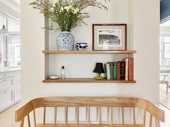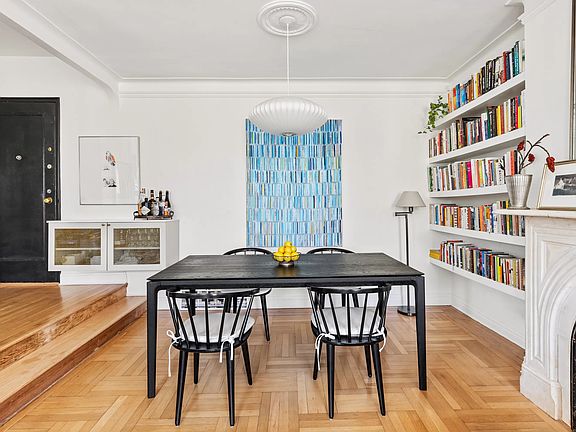 Retreat to this gorgeous oasis, steps away from Prospect Park. Apartment 4D is a meticulously designed home marrying pre-war charm with modern day amenities. Looking out onto a tree-lined street, this fully renovated turn-key apartment is ready for hosting, lounging and working from home. Configured as a 2-bedroom, this home boasts prewar features including lovingly restored crown moldings, arched entryways, resurfaced herringbone hardwood floors, and 9-foot high ceilings. With eastern exposures, the apartment is flooded with natural sunlight. As you enter the foyer, you are welcomed into the home with an arched niche that adds character while giving you some extra storage and display. The foyer also functions as a mudroom, set up with a large mirrored closet and an array of coat hooks on the exposed brick walls. Through dramatic archways, descend into a sunken open plan living and dining area with classic herringbone wood floors. The dining area features a Nelson Saucer Bubble pendant and floor-to-ceiling built-in shelves. A fireplace mantel anchors the room with the charm of this stunning focal point, visually separating the dining and living room areas. Enter through the sliding pocket doors of this thoughtfully designed chef's kitchen. The main feature is a glass wall that partitions the cooking area from the rest of the home, creating an open plan feel. Appliances include Bertazzoni gas range, Bosch dishwasher, Fisher & Paykel stainless steel fridge, a 7-bottle wine cooler and a concealed microwave in the cabinets. There is an abundance of custom cabinetry and shelving to suit all your pantry needs. Designed to maximize food prep space is a 12-foot long Carrara marble countertop bookended by a sitting nook beside the window, perfect for a cup of tea whilst gazing out. Down the hall, tucked away from the rest of the apartment is the bedroom and office space, which can easily accommodate a nursery. The bedroom drenched in sunlight during the day fits a king-sized bed and features Cedar & Moss bedside sconces and built-in floor-to-ceiling closets. An oversized window looks out to a tree-lined block, making for a serene space. Even the bathroom is bright and tastefully designed with modern finishes and Carrara marble floor tiles. There are two large hallway closets perfect for storing household goods, linens and towels. The apartment is wired with Cat-6 ethernet cables throughout making it smart-home-ready. The Berkeley at 25 Plaza Street West is an exceptionally well-maintained full-service 6-story elevator building with 2 beautiful roof decks with sweeping city and park views. There are 63-units in this co-op building with a live-in superintendent and a part-time doorman (8am-Midnight, 7 days a week). The laundry room is in the basement. There is bike storage and on-site parking. Co-op allows up to 80% financing, Pied-A-Terre, co-purchasing and guarantors. Pets are welcome.