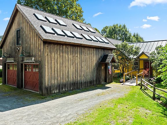 Beautifully renovated in-town home with wood floors and light filled rooms that offers old house charm with many updates. You enter into the large mudroom and immediately you're drawn to the exposed beams and the sunroom that adds a ray of sunlight that fills the room. If you prefer the outside you can enjoy sitting on the stone patio surrounded by the beautiful gardens all summer. The patio canopy offers shade when needed and the entire yard is fenced in with a wonderful flat area of lawn to enjoy. The post and beam two car garage has a fabulous heated studio with a half a bath upstairs for guests, art or yoga studio. Wood floors on first floor will be sanded.