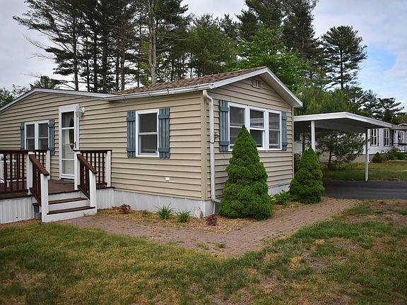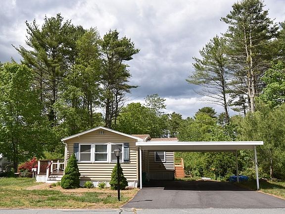 Cranberry Village in Carver, Massachusetts is offering a split bedroom open floor 1983 model home! Its located in a Sunny Area of Presidents Way! Set higher than the homes behind it offering a really private lot! The area amenities include The Myles Standish Forest; near ponds, fishing, Ocean Spray, , a few miles to rte 495, and more! This home has so many major updates including, windows, siding, plywood sheathing, insulation, Tyvek, roof, heat a/c pump by propane, a 2019 carport, (see attached list for details). There are two decks, two bedrooms, 2 baths, and an open floor plan great for entertaining! Hardwood floors have been installed in the Dining, Family Room area that offers the open feel to the kitchen! The kitchen is white cabinets and grey counters with stainless steel appliances! There is a closet for the washer and dryer which are also set to come with this beautiful home! Multiple offer situation: all highest and best are due by Monday June 15th at 12 noon