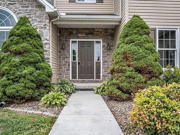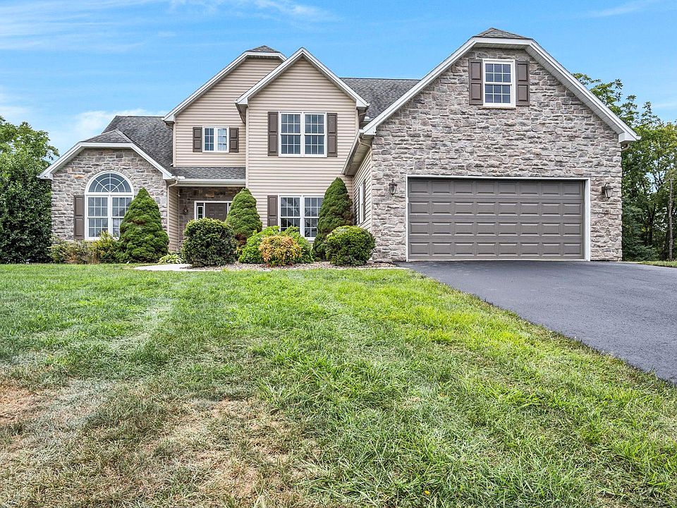Welcome to your new home in a charming neighborhood with views of the North Mountain. This thoughtfully designed property boasts five bedrooms, three baths, and over 3300 sq ft of living space, offering ample space for your family's needs. As you step inside, you'll be greeted by the elegance of Brazillian Cherry Hardwood floors that extend throughout the first floor. Every detail has been thought out, and no expense spared, with all the countertops in the house adorned with luxurious granite. The first-floor layout flows seamlessly, starting with a grand entrance featuring a soaring foyer that sets the tone for the rest of the home. A designated office space and an elegant formal dining room enhance the property's charm and provide the perfect gathering setting. The heart of the house lies in the spacious open-concept family room and kitchen that spans across the backside of the home. Here, you'll find a gas fireplace, many windows allowing light to flow in, and an impressive large breakfast bar, creating an inviting space for family and guests. The kitchen's design, with its eat-in dining area and abundance of counter space, will leave a lasting impression. Upstairs, you'll discover four roomy bedrooms and a full bath, each featuring brand-new carpeting, providing comfort and room to grow in all the right places. The first-floor primary bedroom and ensuite add to the convenience and appeal of this home. But that's not all—prepare to be amazed by the possibilities of the full-sized walkout basement. Step outside on the large patio from the kitchen, and you'll be enveloped in a serene backyard surrounded by beautiful trees and a feeling of privacy. This home rests on a generous .69-acre lot, ensuring plenty of outdoor activities and relaxation space on the large patio. This beautiful home combines comfort and functionality, making it the perfect haven for you, the new homeowner. Note that the private road behind the home allows creekfront properties to be accessed by 3 land owners and is not traveled often.