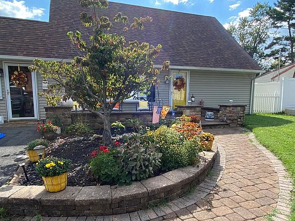 Beautifully maintained and updated throughout, this EXPANDED Jubilee with seasonal enclosed SUNROOM has many upgrades , sure to please any buyer! Upgraded kitchen and bathrooms... Newer roof, windows and extensive hardscaping! Welcome to 25 Prunewood Road... The front yard is adorned with attractive landscaping and extensive EP henry hardscaping. The living room is a great space to relax and enjoy the sunlight beaming through the Anderson sunglass windows with custom blinds. There are two bedrooms on this main level with custom windows and blinds, and closets. The bathroom has been beautifully updated...vanity with marble countertop below an Oval mirror with two custom cabinets on either side and extensive glass tile backsplash. The large shower stall consists of marble, porcelain and glass tile with built in seat and light. The beautiful kitchen has been upgraded with stunning countertops, white cabinetry and stone tile backsplash. There is also a built in server and a custom built table with two chairs included. Enter through the french doors from the kitchen into a beautiful family/dining room area with bamboo flooring, chair rails and custom crown molding. The ornamental fireplace adds to the character of this special space. There are also upgraded ceiling fans and sunglass windows with custom blinds add to the ambiance of this room. Walk through the sliding glass doors into your oasis of a sunroom (24 x 10.5') custom windows and blinds with an octgaonal bumped out sitting/eating area, water resistant flooring and ceiling fan. (The a/c unit is included in sale.) Step into the large backyard with extensive EP henry hardscaping wrapping around to the side of the house with a lovely pergola shade to cover you on those hot summer days. There is also a newer shed with loft for additional storage and newer fence. The spacious laundry/utility room has ceramic tile floors and ample cabinetry and counter tops with washer/dryer high efficiency heater and hot water heater. The stand alone freezer is included in the sale. There is a bonus room (20x11) with a heated ceiling fan, large closet and access door to outside. Upstairs you will find two additional bedrooms with a gorgeous bathroom consisting of marble flooring, high hats, vanity with granite and glass tile back splash. The bathtub is surrounded with marble and glass tile and built in nooks. The roof is two years old with a lifetime warranty and gutter guards all around. Roth above ground glass lined oil tank. This house is turnkey ready and is sure to please any buyer! Close to I- 95 for commuting. Convenient location for accessing local restaurants and shopping.