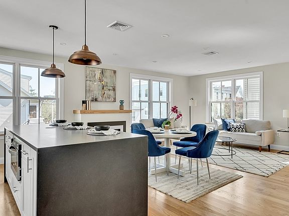 Stylish Living! Quality new construction/renovation bordering Union Sq. 2280sf-on the upper two floors-enveloped by large windows and natural light. Standout design, details, finishes and amenities complement an easy flow. A private entry and an exclusive-use front patio/garden area make this spacious home feel and function like a single family, Both levels have bedrooms with en-suite luxury baths. The top floor has an additional bath serving the other two bedrooms. The main level has a top-of-the-line kitchen with a 36" 6 burner stove, stainless and honed granite tops. A large island with "breakfast" bar AND a dining area open to the living room with fireplace. You''ll love the quality and quantity of the custom Marvin windows and doors and the light they present. High ceilings, 4" wide oak floors, high energy efficiency rating add value . The location, proximity to bustling Union Sq., the new T stop- along with everything this unique home offers- make this a very special opportunity.