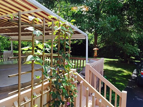Well maintained T-ranch on a quiet low traffic street with horses as your neighbors across the way. Enjoy park like setting with mature trees in front and many shade trees in the back that will accommodate a hammock. Located in a country setting yet minutes away to major routes and convenient shopping. Composite deck off the family room features a retractable canopy & Nordic hot tub. Detached oversized 2 car garage includes 8 ft. doors and plenty of space for lawn care equipment, bikes, etc. Enjoy the ease and convenience of the Central Vacuum systems with outlets throughout the home including one on the deck. Family room features a gas fireplace with easy controls for flame & blower. Low maintenance Pergo floors throughout family room, living room and dining room. Features to enjoy in full basement include workshop area with workbenches, regulation size pool table, 6x8 model train platform and large storage area with built in shelves.