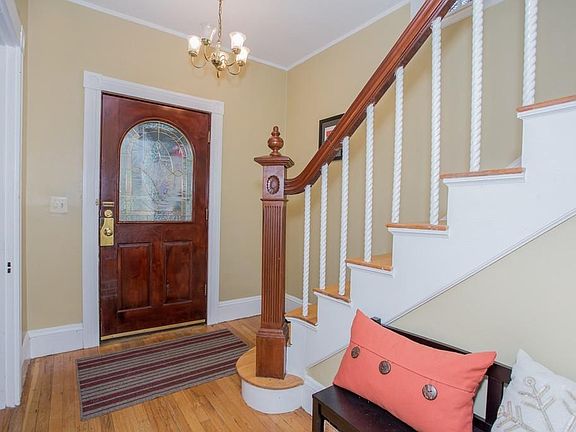 Located on a quiet street this charming Victorian is loaded with character. Just a short walk to Jackson Square and the Commuter Train Station this home makes the trip into town a breeze. The home features large rooms, 9ft ceilings on the first floor, hardwood flooring, updated kitchen, stainless steel appliances, and cozy breakfast nook. The second floor boasts ample size bedrooms, hardwood flooring, large updated bathroom, and 2nd floor laundry. There is large deck off kitchen perfect for barbecues and entertaining. There is ample yard for the kids to play and parents can enjoy an outside fire in the fire pit.