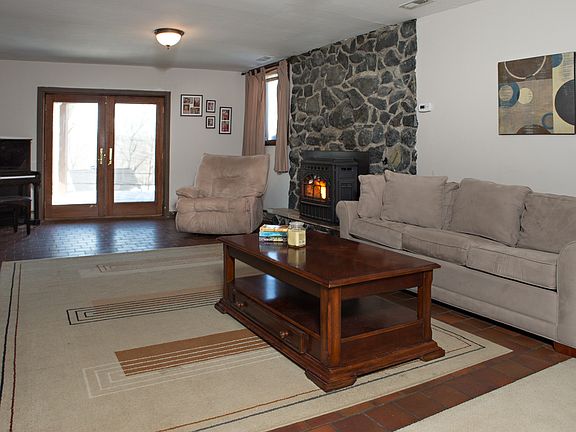 This 3/4 bedroom 2.1 bath contemporary has new kitchen, a brick fireplace and a fantastic stone fireplace w/pellet insert & French doors to patio. Central air, central vac, pellet stove, French doors to huge deck, hardwood and ceramic floors. Master bedroom has master bath. This wonderful home is in great condition in super convenient location. There is 200 AMP 3 phase electric, new water softener, dehumidifier air system, new cement septic tank, fenced in yard and everything well maintained.