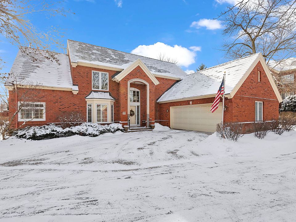 Enjoy maintenance-free living at its finest in this stunning single-family home with a first-floor master bedroom in the desirable Regent Wood subdivision. The home has beautiful curb appeal with a red brick exterior, new synthetic wood shake roof, and brick paver driveway. The entryway with hardwood floors leads to a spacious vaulted ceiling living room with hardwood floors and a center gas fireplace flanked by two sets of sliding doors with palladium windows above. The living room flows into a formal dining room with hardwood floors, tray ceiling, and tons of natural light pouring in from the large windows and sliding doors out to the patio. The large eat-in kitchen includes light cabinetry, white countertops, all white appliances including a double oven, a center island, and a spacious breakfast room area for a second dining table. Conveniently located between the kitchen and garage is a good-sized mud/laundry room with white cabinetry, double door closet, mud sink, and full-size washer and dryer. The attached two car garage is heated as well. The first-floor master bedroom has hardwood floors, a tray ceiling, ample amounts of closet space, and a set of sliding doors out to the patio. The en-suite bathroom has a soaking tub, separate shower, and two separate vanities. First floor den/office with hardwood flooring and a bay window with plantation shutters. Completing the main level is a convenient powder room. Welcoming you to the second level of the home is a seating area dividing the two bedrooms. The two large second floor bedrooms both have huge walk-in closets and hardwood floors as well. These bedrooms share a full bathroom with one having direct access. Further expanding the living space is an amazing finished basement which includes a family room, huge game room area, a mini kitchen/bar area, and another full bathroom. The home has many sets of sliding doors leading out to brick paver patios that wrap around the house offering multiple areas to enjoy the maturely landscaped subdivision. Additional Features New synthetic wood shake roof 3-4 years ago New furnace and air conditioner 2022 New hot water heater 2017 Heated attached two car garage. Generator.