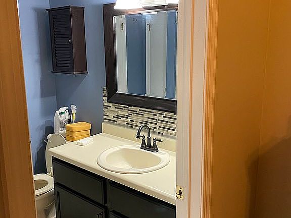 Finished basement with ample storage. One car garage. Recently refurbished (Summer 2021) , no paint and stain free deck off back of the house. First floor features hardwood floors in foyer and a wood burning fireplace. Kitchen was recently updated (Summer 2022) with granite counter tops new tile flooring and a new backsplash. The second floor features two large bedrooms, both with walk-in closets and 1/2 vaulted ceilings. Each bedroom has access to the full ‘Jack and Jill” bath. The best feature of the second floor…laundry room with separate washer and dryer!
