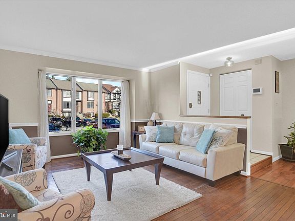 Beautifully maintained townhouse in a great location with a park like setting! Featuring , NEW ROOF (Oct 2021) and hardwood floors throughout main level. A light filled living room with chair rail and crown molding leads to separate dining area with pass through window to make hosting a breeze. Spacious eat-in Kitchen with newer refrigerator and sliders out to large back deck with view of woods. Large Primary bedroom with 2 closets. 2 other nice size bedrooms upstairs and a possible 4th bedroom or office space in basement with walk-in closet. Lower level is finished with family room, full bathroom with laundry area and sliders to covered patio. Parking is made easy with 2 appointed parking spaces and guest spot conveniently located across the street. Call for appointment today.