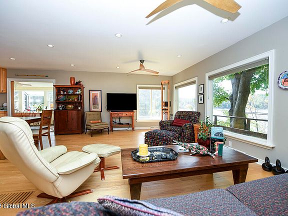 Spectacular Lakefront Home retreat with breathtaking Sunsets. Escape to your own piece of paradise with this exceptional lakefront home that offers 100 ft of lake frontage with dock & west-facing views. 2 acres offers endless opportunities for a garden oasis. This year-round residence is just 30 minutes from Albany and two hours from NYC. The deep, private, spring-fed lake invites you to explore water activities or simply bask in the natural beauty. The open-concept living and dining area boasts panoramic lake views through large windows creating a warm and inviting atmosphere. 2 garages offer abundant storage space for your vehicles and water toys. Whether you seek a peaceful retreat, or a year-round lakeside paradise, this property offers it all. Don't let this rare gem pass you by