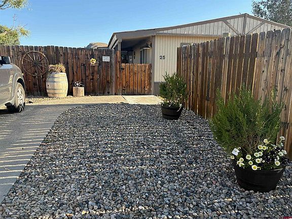 The home is a manufactured home, clean and comfortable. The home large shop building has a partially fenced yard and is situated on two lots that theoretically can be sold separately subject to HOA and county approval. The property has a large private patio area between the home and the shop.