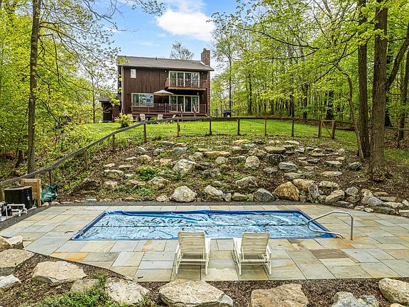 Charming contemporary on 1.96 acres with beautiful seasonal views of Stissing Mountain. This three bedroom, two and one half bath home provides 1,944 square feet and a spacious layout between the rooms and wonderful outdoor living spaces. The living room offers a fireplace with a woodburning stove insert. The living and dining rooms open to the kitchen. Sliding glass doors lead to a large deck and a professionally landscaped pool area with a heated in-ground saltwater lap pool. The first floor also has an office/den with walk-in closet and access to the attached 2-car garage. Upstairs are three bedrooms, a full bath and an ensuite primary suite with balcony. New roof in 2017, new windows on three sides of the home 2021, new furnace 2017, pool 2022, a whole house generator, and central air conditioning. The property is part of the member only Briarwood Homeowners Association that gives access to a 26-acre private reserve that includes a 5-acre pond for boating and fishing, annual dues $400. Located close to the Harlem Valley Rail Trail, 30 minutes to Catamount ski area, 15 minutes to Metro North Wassaic line and 90 miles north of NYC.