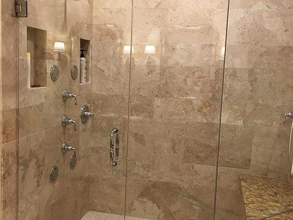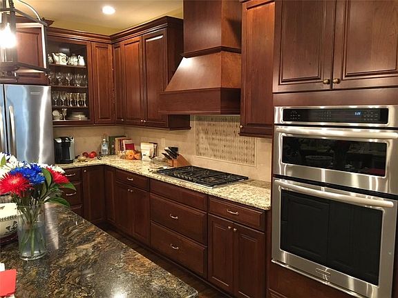 Recent renovation features brand new kitchen with custom cabinets, SS appliances, granite counter-tops. Red oak hardwoods throughout main and upper floor. Master bath features oversized shower with multiple shower heads, bench and built-in niches; Cambria quartz counter-top and tub decking; heated floors. Ceiling fans in all bedrooms, upstairs den, and great room. Custom red oak mantle with granite hearth and surround. Mahogany front door, transom, and sidelights. Whole-house water filtration system.
