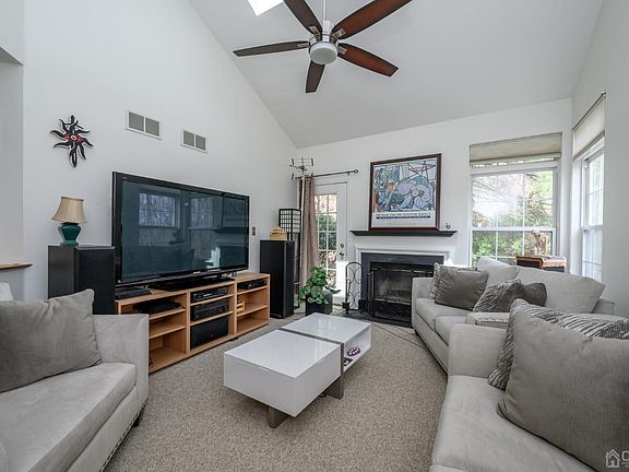 Welcome to Woodmont! This spacious 3 Bed 2.5 Bath End Unit Townhome with Master Suite, Full Basement and 2 Car Garage is more than meets the eye! Well maintained in a quiet end unit, this sought after Cypress model backs to peaceful and private wooded views. Tiled Foyer entry opens to a light and bright Living room with cozy woodburning fireplace, soaring skylights, and vaulted ceiling that truly opens up the space! Adjacent Formal Dining room makes entertaining easy. Eat-in-Kitchen offers ample cabinet and pantry storage, along with a sunsoaked breakfast area. Spacious first floor Master Suite makes for accessible one level living, complete with it's own ensuite bath with dual sinks, stall shower, and soaking tub. Convenient laundry room and 1/2 bath round out the main level of this gem. Upstairs, find 2 more generously sized Bedrooms, along with the main full bath offering dual sinks, stall shower, and addtl soaking tub. Full Basement is an added bonus- finish it off for even MORE living space! Plenty of natural light throughout this home, along with a crisp neutral paint palette that is easy to customize. Charming rear Patio with serene wooded views, Central Air/Forced Heat, 2 Car Garage, addtl guest parking, the list goes on! All in a great location, close to shopping, parks, trails, farms and more. Don't wait! Come & see TODAY!
