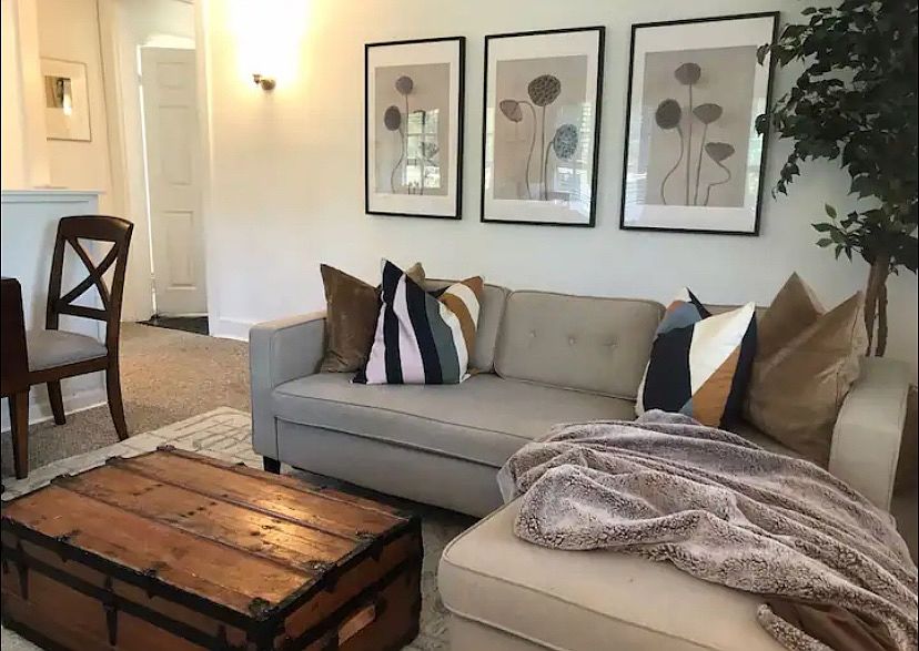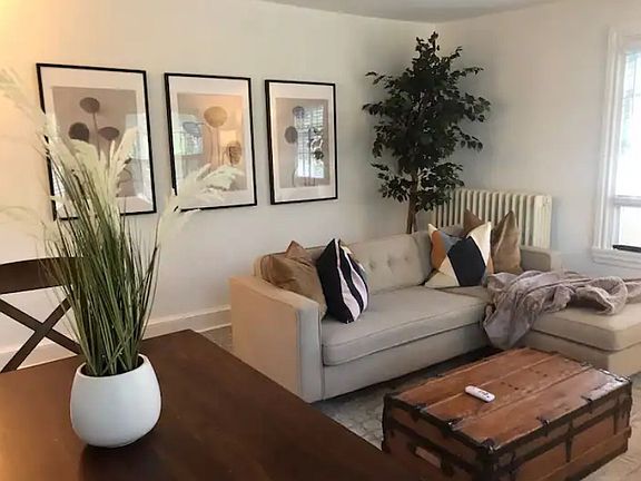 Large furnished 1 bedroom apartment located in the heart of historic Mount Holly. Only a 5 minute walk to downtown with its cute shops and restaurants. This unit is on the 3rd floor of a small building. The large living room is open to the kitchen. Including stovetop, microwave and full size refrigerator. The bedroom is spacious and has a queen bed with night stands and a dresser. The apartment also features a sunroom with open views to a park. Short-term available (4-6 months) and 1 year. Furnished Rental: Short term 4 to 6 month lease or 1 year lease available. *Owner pays for utilities and WiFi **1st month rent and 1 month security for move-in **Must have good credit. Small dogs and cats ok with approval.