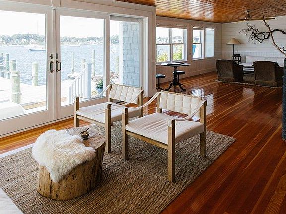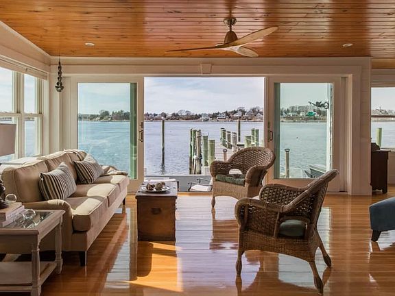 YEARLY RENTAL AVAILABLE MAY 1 This stunning waterfront home offers breathtaking views of the Sakonnet River. Designed for comfort and relaxation, this unique property features an open and airy layout with three spacious bedrooms and three full baths. The heart of the home is the inviting eat-in kitchen and family room, which seamlessly flow into a bright and cozy waterfront living room/sunroom. Step through the sliding doors onto a picturesque waterside patio. Enjoy direct access to your private dock, ideal for boating, fishing, or simply unwinding by the water. Upstairs, the expansive master suite boasts an en-suite bath, an additional water-facing bedroom offer stunning views and access to an oversized second-floor balcony. Perfectly situated just 15 minutes from Newport and the Naval Base, 45 minutes from Providence, and with quick access to Boston, this home combines tranquility with convenience. Don't miss the chance to live in this exceptional waterfront retreat!