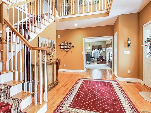 Exquisite top of the line colonial with the best of all amenities. Meticulously, lovingly kept. Brick side walk to front entrance. Enter through an open, bright, grand foyer. Bright energy efficient windows, gleaming hardwood floors throughout as well as recessed lighting in a wonderfully open floor plan with 9 ft ceilings...Beautiful gourmet cooks kitchen with granite, cherry cabinets w/ soft close features, granite backsplash & stunning light fixtures. Four season sunroom/solarium with transom windows and french doors galore, ceiling fans and skylights with ship-lap ceiling, overlooking large, private back yard w/gardens & blue stone patio. Great room with skylights and stunning marble fireplace. Large office or living room. Luxurious master BR Suite with Juliet balcony, overlooking forestry and gardens, 2 walk in closets and full over-sized bath with Jacuzzi tub and large shower stall. Central air & Central vac. Ample sized bedrooms. Full finished walkout basement with a 5th bedroom, lovely entertainment room and a workshop. This home offers privacy with exceptional quality and exquisite details. Professionally landscaped. Extensive stonework. Wonderful opportunity to own a pristine home on quiet country road, 3 miles to outlet malls, restaurants and I-95 with Award winning schools. Then minutes to beaches, quaint town center, theaters and train. This elegant home is a must see!