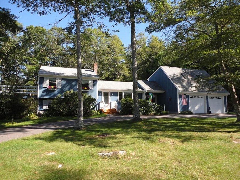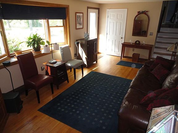 As you enter thru the covered porch turn right and to the oversized heated 2 car garage, up stairs is an enormous room with Skylights and a large picture window overlooking the peaceful grounds. Endless possibilities with this room, exercise room, studio, game room teen suite. To the left is the Formal living room with gleaming hardwood floors,then enter the large eat in kitchen that had a major facelift with granite counters, new appliances, subway tile and more. Off the kitchen is a heated sunroom with an oversized hot tub, no need to go to the spa! Off the kitchen and up a few stairs you will find the Master bedroom which has sliders to a gigantic deck great for entertaining with stairs to back yard, two more bedrooms and an updated bath with double sinks granite counters. Down a few stairs is the 2nd bath with laundry the 4th bedroom and a cozy den with beamed ceilings and wood stove. and wait there is more...unfinished basement with a workroom. Freshly painted, and many updates
