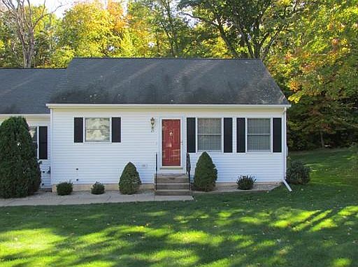This is a must see well maintained end unit in a convenient location. The spacious eat in kitchen and living room feature an open floor plan with vaulted ceilings for a nice open feeling. Enjoy a finished lower level room which is ideal for a hobby room or sewing room. All appliances remain. Nice outdoor patio offers plenty of privacy being an end unit. Very nice club house available to hold private events. This unit is aggressively priced and makes sound financial sense for someone seeking a 55 and over community with one floor living with plenty of basement storage which is always needed!! Hurry to see today!