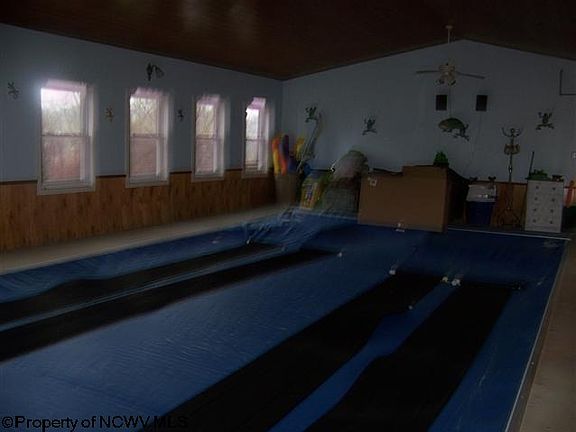 Detached, Log - Enterprise, WV Log home with cedar walls and cedar vaulted ceilings, large sun porch, breeze way between pool and house, car port 40 x 20, barn 50 x 24, detached 2 car garage 30 x 24, 16 x 32 x 4 foot deep heated indoor pool, sloped lot,
