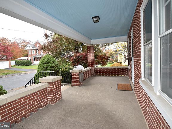 Please have all offers in to Listing Agent by 6:00 pm Friday November 10th. Offers will be reviewed Saturday morning. Location, Location!! 1920 quality-built charming brick cape cod in wonderful neighborhood of single homes and a quiet street. Invite your neighbors to join you on the huge front porch, 9 x 23, with plenty of room for all your rocking chairs. Storm door on the front entry into the living room. A brick fireplace is the focal point of the room with mantle and brick hearth and two windows on both sides. Two electrical outlets above the fireplace for decorating. Owners turned the wood burning fireplace into an electric fireplace for a “no fuss” situation. Open staircase, ceiling fan fixture and coat closet. The dining room has a bay walk-in and an old-fashioned swinging door going into the kitchen. Smooth top electric range, dishwasher, exhaust hood fan, stainless steel double sink with windows above and garbage disposal. Tiled flooring and backsplash. Note the lower cabinets offer a pull-out table for your family or extra baking space. Powder room off the back of the home with floor and walls tiled. The second floor offers three bedrooms, with more closet space than many others this age. The tub shower is surrounded by tiling, as is the floor. Hall linen closet. There is a small walkway outside the back of a bedroom with great views. (enter at your own risk) All bedrooms have ceiling fans. Roof was replaced with “lifetime” shingles. Oil burner was replaced in 2016 with a New Yorker with two zones for comfort. Inviting covered deck, 12 x 12, for those rainy days. Private back yard with a sidewalk leading to the alley and one leading to the 2-car garage with some attic space. There are electric door openers for the garage doors plus off alley parking! Shed is on a cement slab. (There is a paper street/alley at the rear of the yard.) Call borough for details.