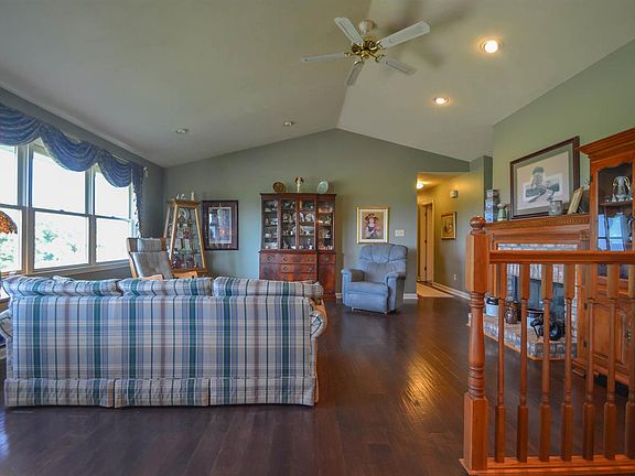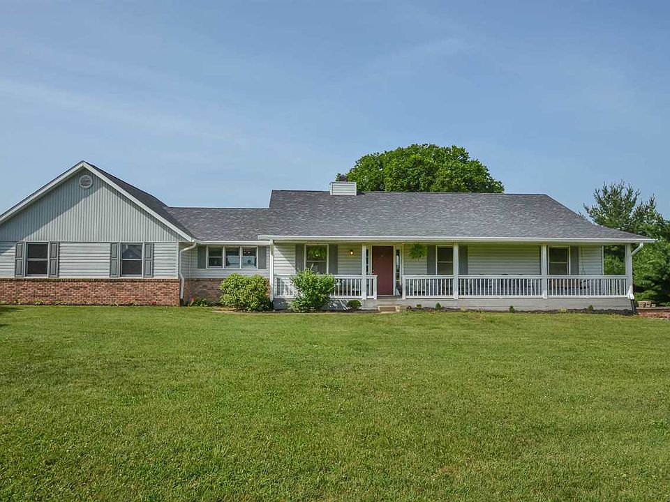 This custom ranch home over finished walk-out lower level has a magnificent view of rolling countryside in charming Gosport. This updated home has new engineered hardwood on the main level, a family room with fireplace, entertaining kitchen with island, dedicated laundry room, four bedrooms, built-in bookcases, lower level guest suite or in-law quarters, a huge recreation/media room, full covered front porch, and 1.3 +/- acre site. Gosport is 25 minutes west of Bloomington and has a gorgeous authentic historic setting. This adorable river town has maintained the turn of the last century charm with local businesses and shops. Don't miss this slice of Americana with the town park and gazebo. This is the quintessential small town lifestyle.