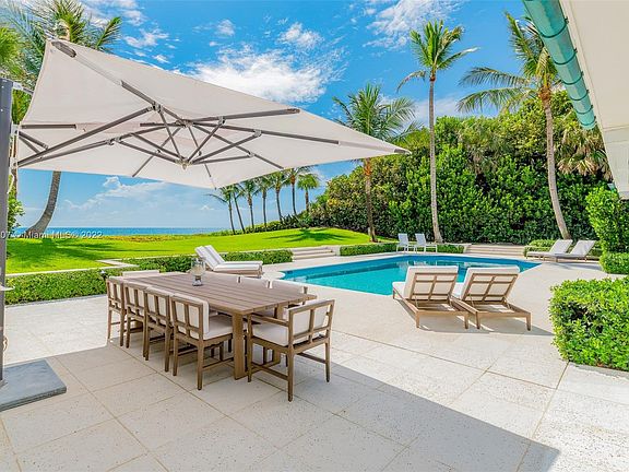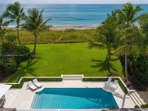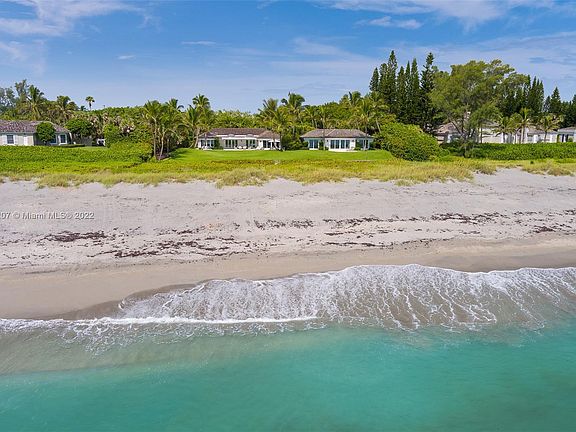 A move-in ready and fully furnished Oceanfront estate on Jupiter Island is available for purchase. This home, hidden beyond a Banyan tree canopy entrance, features 1.83-acres and a sprawling 200’ of beach frontage that allows for expansive outdoor space and privacy. Feel secure knowing the property has been completely remodeled from top to bottom with quality materials, finishes, and fixtures, including Impact Glass windows and doors, a Generator, new AC systems, and Roofs less than ten years old. Enjoy this Jupiter Island estate with ocean views, a large oceanside pool, a motorized louvered pergola, and a well-equipped outdoor kitchen.