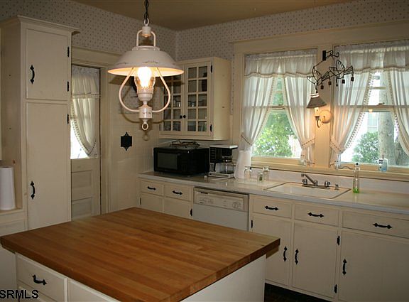 Great home with so much character. Large eat-in kitchen with center island, built in cabinets in dining room, wood burning fireplace, covered front porch, enclosed rear porch, large rear yard, one car detached garage, rear patio, new electric panel, full basement, city water and sewer.