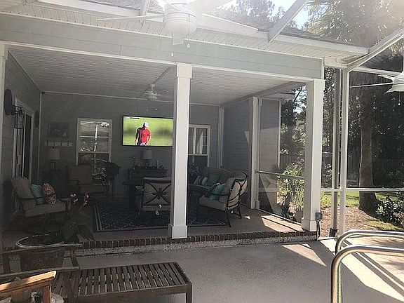 Beautiful custom home and grounds located in developed gated and private Palm Bay Community which consists of only 22 wooded lots. Large professionally manicured backyard with lots of green space. 2 fully-stocked large mouth bass ponds (see photos of recent catch-Monster!) right behind the property provides much added privacy. Newly installed hard wood in the master bedroom and closet with new custom cabinetry for plenty of master closet space. Large custom designed bonus room, media room or 4th bedroom up with full bath. 2765 sq ft inside living area with amazing open floor plan. Craftsman garage with HDTV, mini-split A/C and heat and custom lighting. 1460 sq ft outside living area consisting of a 15 ft x 30 ft heated concrete Salt-water pool with waterfall that is screened-in, has ceiling fans and lamp light posts. Also, an adjoined outside entertainment area with 60 inch Terrace Full Sun Outdoor QLED 4K Smart TV, fire pit and custom furniture. Drip-irrigated and professionality illuminated grounds have been professionally landscaped with perennials that bloom throughout the year. Home is situated a couple of miles from the Kilkenny boat launch and the Intracoastal Waterway!