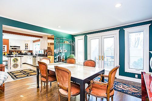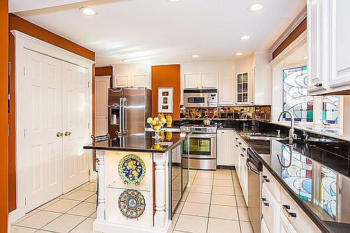 A special Home with many features for ease of elegant yet comfortable living with 2 CAR Garage. 3700+/-sqft, renovated designer influenced, 4 Beds+nursery/3.5Baths not including bed/bath in sep. entrance guest suite with own w/d. Gourmet kitchen enhanced by sun drenched custom stained glass bay window, gas cooking, copper backsplash with stainless appliances, walk-in pantry, glistening granite counters, bkft island with two 50 bottle wine chillers. Professionally landscaped garden patio off main fl. Living room has 17' custom cherry built-in, one of 2 gas fireplaces with marble surround. Spacious Master bedroom, en suite spa bath, multiple walk-in closets fitted with custom closet systems, cherry built-in w/ gas FP. Other features; custom full length Plantation shutters thru out, laundry room on bedroom level, HDWD floors thru out, 6 zones, A/C, security system, skylight, walk-in attic with expansion possibility & cathedral ceiling, direct access from garage thru tiled mudroom.