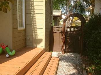 Downstairs family room w/ raised used-brick fireplace. Upgraded kitchen, gas range, stainless steel appliances, trash compactor, breakfast bar, eat-in kitchen, dining area. Plantation shutters, slider leading to deck & yard. Yard w/ wood deck & waterfall. Laundry room w/ washer/dryer incl. Downstairs bath. 2 Bedrooms with renovated closet doors. Upstairs family room w/ wood floors, tile fire place, slider leading to deck. Master bedroom w/ vaulted ceilings, mirrored walk-in closet, slider leading to outside deck. Master bath tiled floor, large shower, separate bath tub, 2 sinks.