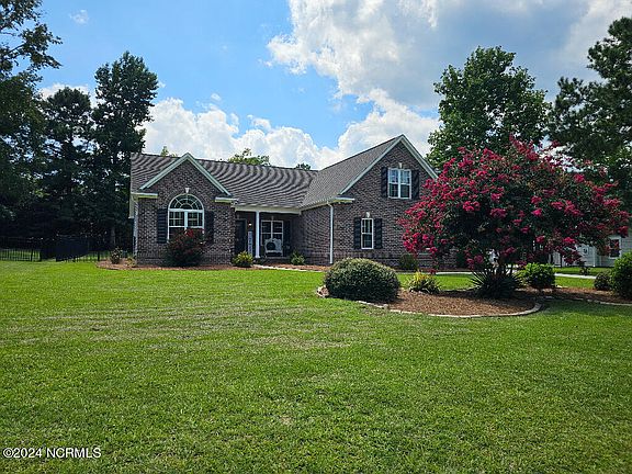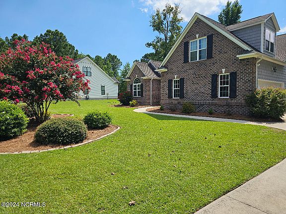 Welcome to Tradewinds Cove a private, waterfront community tucked away on the Virginia Bay with a community day dock perfect for fishing, enjoying the scenery, paddle boarding, or kayaking via the launch. Perfectly positioned 15 Minutes from Topsail Island, 30 minutes from Wilmington, and 30 Minutes from Jacksonville in the sought after Topsail School District. This property offers coastal living at its best. In this custom-built brick and vinyl shake home you will experience minimal exterior maintenance and a split floor plan with 3 large bedrooms, 2 baths plus a bonus room. The home boast wood floors, custom built ins, granite counters, stainless appliances, and lots of natural light. You will also find a formal dining room, huge laundry room with built in cabinets, a large, screened porch, massive primary with an oversize primary bathroom and large walk-in closet. There are tons of storage spaces in this home including two pantries in the kitchen, 2 hall closets, a large, floored attic space off the bonus room, and a large side-load 2 car garage. The outdoors includes mature landscaping, a 5 foot aluminum fenced backyard, a full yard irrigation system, and privacy via a mature tree buffer in the backyard. The dual gates located just off the end of the driveway, allow access the back yard for storage of your boat and / or utility trailer. Come home to comfort with the NEW HVAC system installed in August 2024 that includes a FULL 10 YEAR TRANSFERABLE WARRANTY. If this isn't enough a large watercraft launch allowing access to the ICWW is less than 1 mile away. This home truly offers the best of southern coastal living.