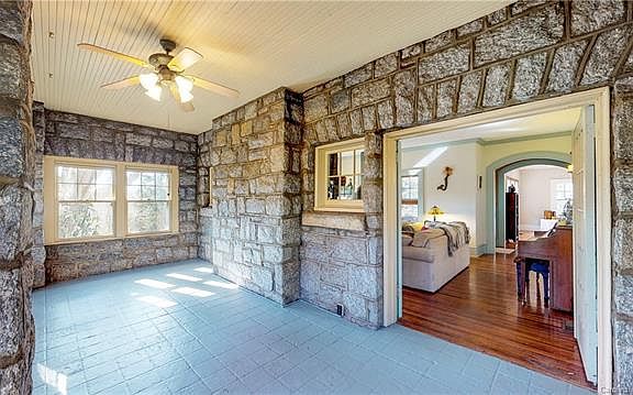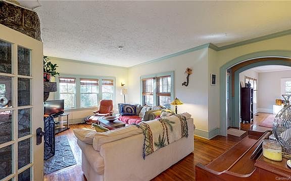 Arts & Crafts bungalow just moments from the heart of downtown & Biltmore Village! This home oozes character & a little TLC could really make it shine. Outside you'll find lots of stone work and copper gutters. Inside you'll find beautiful interior rockwork including the charming living room fireplace, arched doorways and original hardwood floors. Living and dining rooms have hardwood floors, and kitchen has a pantry, wood countertop and breakfast nook. 2 main level bedrooms each with its own bath. Main level laundry, as well. Two generous bedrooms each with ensuite baths & fireplaces upstairs. The basement has a full bath, semi-finished bonus room, & unfinished space. Outdoor living areas include an awesome covered back porch with views, front sunroom w/ ceiling fan, funky & fun partially fenced yard with room for kids, pets & planting. Surrounded by trees yet right downtown! 2 car detached garage is accessed from alley in the rear. - Be sure to check out virtual walk through tour!