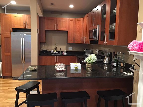 4 Bed/2 Bath, raised 1st floor, hardwood floor, recessed lighting, stainless steel appliances including dishwasher and microwave, granite counters, central heat and A/C, rear porch, pet friendly, coin operated laundry in basement.