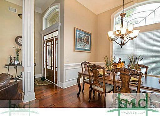 If you need five bedrooms, this is not the house for you, but if you want a one story, quality built CUSTOM home with lots of extras, take a look. This empty nester home has exceptional trim moldings, a sea of hardwood floors and as soon as you walk through the front door you immediately see the outdoor living area through the double doors with a screened area, vaulted ceiling, outdoor wood burning fireplace and a place to relax! It is also prewired for hot-tub. The tall ceilings, open floor plan, two fireplaces and large rooms make this home perfect for entertaining at home. The owners built an enlarged master suite with walk in roman shower, jetted master tub and huge master closet as on the opposite wing of the other bedrooms in the home. No flood ins!! Half acre lot! Walk in pantry and large laundry room make for easy living. Low maintenance exterior with two Carrier AC units and termite bond in place. The coffered ceilings in the front office make this home office exceptional! Flood Insurance Is NOT REQUIRED Built for entertaining with tall ceilings and open floor plan Crown molding package with tall baseboard trim Formal Dining Room with unique trim package Rounded sheet rock corners Kitchen features 2 pantries (one is walk-in pantry) Kitchen features built in microwave and oven Kitchen features beautiful cabinetry with built in lazy-susan Oversized master bedroom with oversized master closet Rope lighting in trey ceiling Walk-in roman shower with double shower heads Jetted tube with tile surround Surround sound in great room wired to media closet One 80 gallon hot water heater Walk in full attic Beautiful outdoor living area wired with surround sound Outdoor living prewired for alarm and two 40 amp plugs Quaint Subdivision with community pool, bath house, two gazebos, and playground. Transferable retreat termite bond with Yates Astro Half acre lot with zoned sprinkler with timer Oak tree overlooking courtyard entry garage Keller Williams Realty Richmond Hill 912-459-5001 Office 912-658-1390 Cell Direct