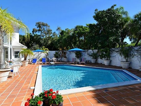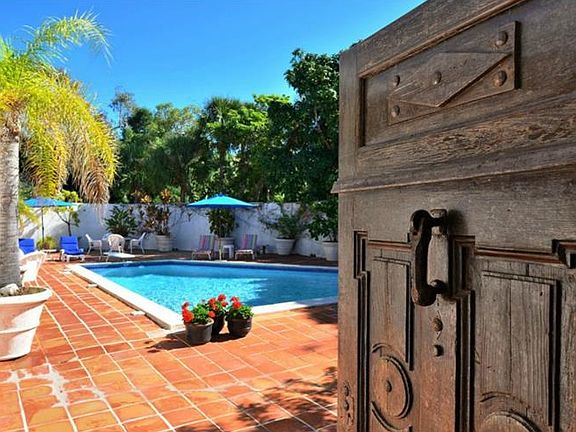 Nestled on the shores of the Gulf of Mexico within the exclusive enclave of Sandy Hook, this beautiful European style home rests just steps from the beach. The interior showcases vaulted ceilings and endless windows, creating light-filled spaces that are perfect for relaxed beachfront living. Spanish tile floors, antique wood doors imported from France and a large wood burning fireplace add touches of tradition to the contemporary style, while three bedrooms, four baths, ample storage space and a fitness room provide comfort and luxury. Entertain al-fresco from the large outdoor living area, with an open-air pool and patio surrounded by a privacy wall. Make your footprints in the sand of the community's private, deeded stretch of Siesta Key before watching an iconic Siesta sunset over the Gulf of Mexico. Look out to the city skyline and raise a toast with friends from the tropical beach cabana, or stroll over to Siesta Village for a casual dinner -- the best of Sarasota living is at your doorstep.