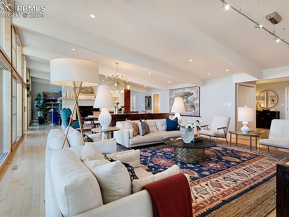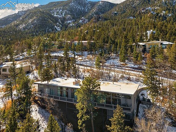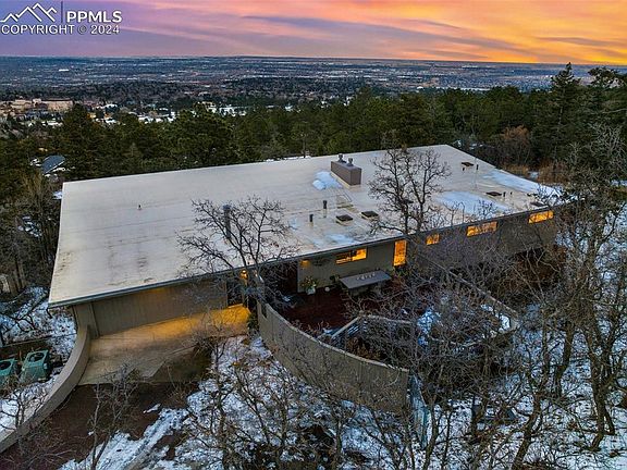 This mid-century modern gem will knock your socks off! Nestled on a .43 acre stunning lot in the heart of Broadmoor Heights, you will be enchanted with the privacy, serene chimes of the Will Rogers Shrine, mountain views and the twinkly city lights. As you enter, prepare to be dazzled with maple flooring, floor to ceiling windows, designer light fixtures and an open and inviting floor plan. Entertaining will be a breeze as the modern and beautifully appointed kitchen showcases newer Viking stainless appliances, sleek cabinetry, coveted stone countertops and windows overlooking a dynamite enclosed front patio. The main level living areas are chic and provide ample opportunities for casual living with a sophisticated aesthetic. Shoji doors accent the floor to ceiling windows leading out to a rear deck spanning the entire length of the home. Designer touches can be found throughout the home and the special den area adjacent to the dining room boasts lovely built-in shelves and cabinetry for storage. The intimate primary bedroom features beamed ceilings, extensive closet space, a renovated spa-like bathroom with free-standing soaking tub, walk-in shower and a tower of additional built-ins for easy storage. The two additional spacious bedrooms on this level share a Jack and Jill Bathroom. Other notable attributes include a large study, vaulted ceilings, skylights, recessed lighting, custom garage storage and so much more. The front patio will be a wonderful spot to entertain or just enjoy the ambience of mountain living. Meander to the basement and another quaint space can be found which is ideal for some additional privacy and spot away from the crowd. The 4th bedroom on this level has a dedicated bathroom. This is a one of a kind spot with easy access to miles and miles of hiking and biking trails just steps from the home. This home has been lovingly cared for and restored throughout the years....don't miss out!