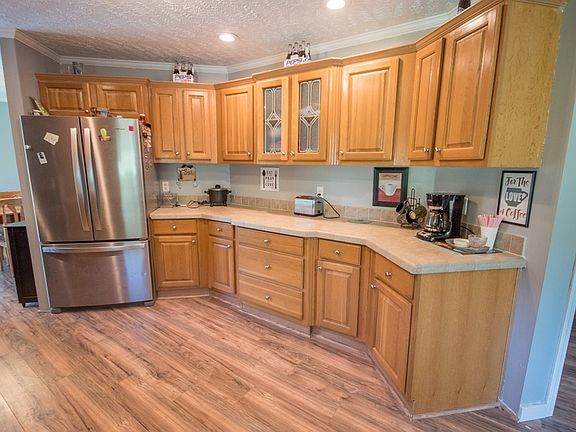 Very nice spacious 3 bedroom + 2 bath home close to town! . Nice and flat yard all the way around! Nice kitchen with lots of counter space, stainless appliances, pantry, dining room off kitchen, living room, and also a family room with wood-burning fireplace. Large master bedroom with walk-in closet and large master bath with garden tub, shower, double sinks and lots of storage. The home is in a tasteful all neutral color scheme throughout with laminate floors. The property also features a detached metal double car garage that could be used for extra storage or workshop! Single level living with easy access close to town!