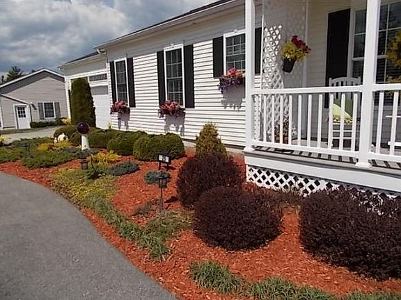 Beautifully landscaped 2 bedroom 2 bath, 2 car garage home situated in Mill Pine village offers Central Air, Central Vac.Enjoy those lazy days of summer sitting on your 16x6 farmers porch. Open foyer w/rounded wall looks onto dining area w/ tray ceiling, living room w/gas fireplace and crown moulding. Master w/ large closet, ceiling fan. Master bath w/double bowl vanity also a corner whirlpool tub. Kitchen w/ island, pantry, corian counters, glass cabinet doors and cove moulding. 12x12 3 Season porch w/rolling insulated windows. 6x8 grilling deck, full unfinished basement for future expansion or storage. A must see!!