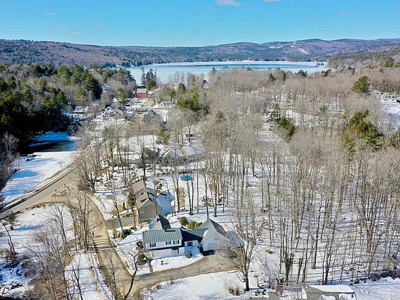 Location, Location, Location! Located just a short walk from the town beach and public boat launch on Pleasant Lake is where you will fill find this cozy New Englander nestled on a knoll. Spend your days sitting on the front porch or on the back patio. This home offers lots of space including an oversized 2 car garage with storage above, a large home office, a spacious family room with a massive brick fireplace, 1st floor primary bedroom with 1/2 bath, laundry room and large eat in kitchen. The 2nd floor has two bedrooms a 3/4 bath and two attic spaces for additional storage. Additionally there is a standing seam metal roof, newer boiler, paved driveway, lots of built-ins and the home is wired for a portable generator! You will even be pleasantly surprised when you see the basement of this home! Showings are delayed and start at the open house on 02/18/2023 at 10am-1pm. (Building in NOT in a Flood Zone, but small corner of the parcel is, Seller has a LOMA letter on this).