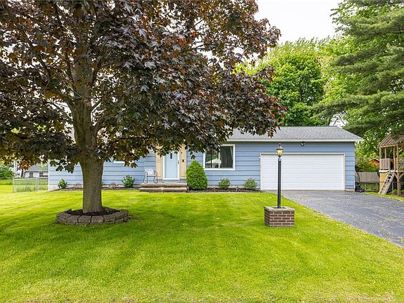 Beautiful Greece ranch located in a private, quiet neighborhood! This charming home offers 3 bedrooms, 1.5 bathrooms, and a spacious 2-car garage. The interior has been recently updated, featuring new windows installed in 2025 that fill the space with natural light and brighten every room. As soon as you walk in, you'll be greeted by an intricate gas fireplace that adds warmth and character to the living area. The kitchen is beautifully decorated with granite countertops and leads out to a lovely porch with sliding doors, perfect for outdoor relaxation. The expansive backyard includes a gazebo & a hot tub, providing a private oasis for outdoor gatherings and enjoyment. The bedrooms boast cozy carpets and closets for ample storage. Don't miss the immaculate finished basement, partially furnished with a pool table, treadmill and couches—an ideal space for entertaining or relaxing with family and friends! Fenced backyard offers privacy and a safe outdoor space. This is truly the perfect place to settle down! Join us for the open house on Sunday, June 1st, from 12:00 to 1:30 PM. We look forward to seeing you there! **Delayed negotiations June 2 10 AM**