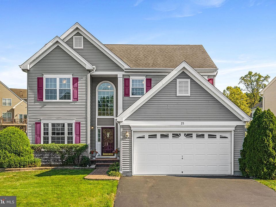 Nestled in the highly sought-after Grande at Crystal Lake community in Bordentown Township, this home—offered by the original owner—delivers the full package: Location: A COMMUTER'S DREAM! Condition: Still smells like new! Size: Over 2,200 sq ft plus a full basement! This Dalton Model offers 4 generously sized bedrooms, 2 full bathrooms, and a convenient powder room on the main level. The chef’s kitchen, with 42” cabinets and some newer stainless steel appliances, features an island with room for a breakfast table. From the kitchen, easily flow into the family room with a cozy gas fireplace and hardwood floors. Sliding glass doors lead to the fenced-in backyard—one of the largest lots in the community (0.21 acre)—with a paver patio that’s perfect for BBQs (and yes, the grill is included, with a natural gas line already connected!). The built in sprinkler system will keep the lawn looking great even in the heat of summer! Need storage? This home has it covered, with multiple closets throughout and a 2-car garage. Plus, the massive unfinished basement with high ceilings and insulated walls is ready for your custom touch! Laundry is conveniently located off the kitchen, with the washer and dryer included in the sale. Upstairs, you’ll find 4 spacious bedrooms with carpeting. The Master Suite offers a private ensuite bath featuring ceramic tile, double sinks, a soaking tub, stall shower, and walk in closet. With brand new windows throughout, this home is filled with natural light, making it even more inviting and comfortable. Lovingly maintained by the original owner, it’s truly move-in ready! Located just off Route 130, commuting is a breeze with quick access to Route 206, I-295 (less than a 5-minute drive), and the NJ Turnpike. Enjoy being close to Bordentown’s charming restaurants and shops, McGuire-Ft. Dix-Lakehurst Air Base, and you’re only 45 minutes from the beach! This is New Jersey living at its best—make your appointment today and make 25 Seneca Lane your home!