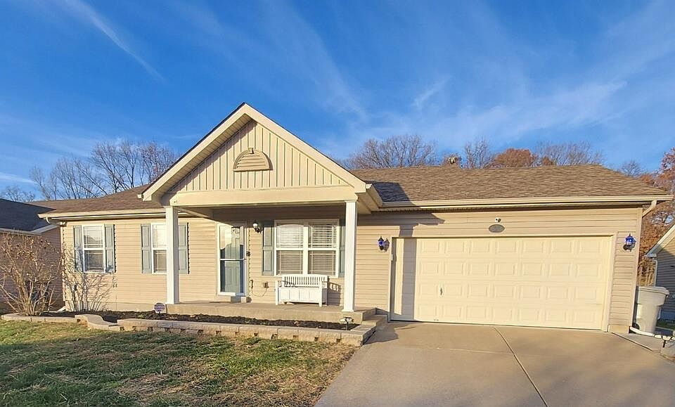 Welcome to Anna Meadows, a sought-after neighborhood. Charming, Clean 4 BR/3 BA/2-Car Garage Ranch Home w/Main FL Laundry/Cabinets/Pantry. Step inside, embrace the coziness of the Family Room, w/wood flooring/vaulted ceilings/open stairwell embodied w/Black Wrought Iron Twist/Single Basket Baluster. Wood flooring in Kitchen, updated white cabinets w/slide out storage/lower cabinet, newer SS appliances, spacious granite countertops. Wood floor hallway/1BA, 2 carpeted BRs w/Custom Closets, Master BR w/BA. Journey via a slider to a screened in porch/large patio, updated landscaping/sidewalk, spacious fenced in flat yard for your entertainment. 2 Car garage/insulated/drywall. Admire downstairs-Pocket doors slide open into 4th BR w/wood floors and spacious BA, AND a relaxing jetted tub. Carpeted area for entertaining includes wired surround sound. Enter into a storage area w/3 LARGE sturdy wood shelving units. This home is move-in ready conveniently located 10 minutes from Wentzville!