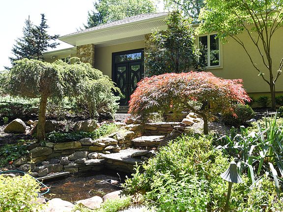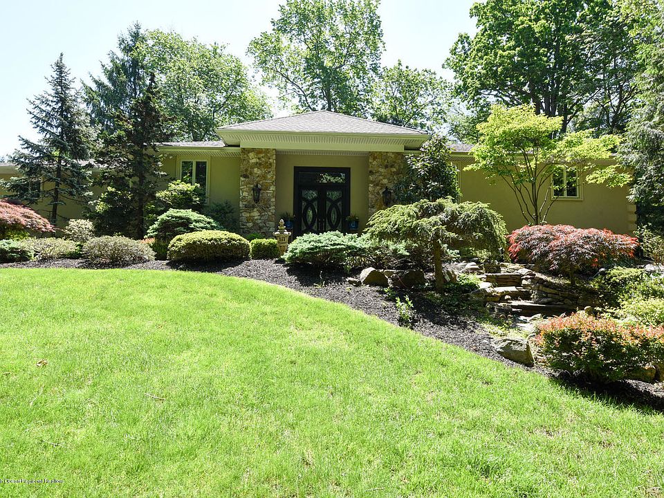 Meticulously maintained, four-bedroom, 3.5 bath unique custom ranch in the prestigious Country Hills Estates featuring a private Shangri-La-like wooded setting, complete with a concrete in-ground pool, deck and patio overlooking picturesque gardens and well-designed landscaping. Beautiful leaded-glass double-doors set the stage for whats inside where an inviting foyer leads up to a spacious living room and a stunning mantle above the gas fireplace that demands your attention. A separate and spacious formal dining room is an ideal space for entertaining and well placed throughout the home are the 3 additional bedrooms. The homes updated, eat-in-gourmet kitchen with Thermadore, GE Monogram and Kitchen Aid appliances compliment the light wood cabinets, large island and granite countertop.