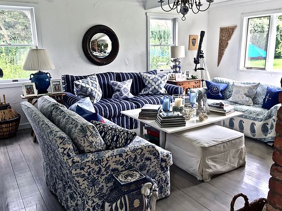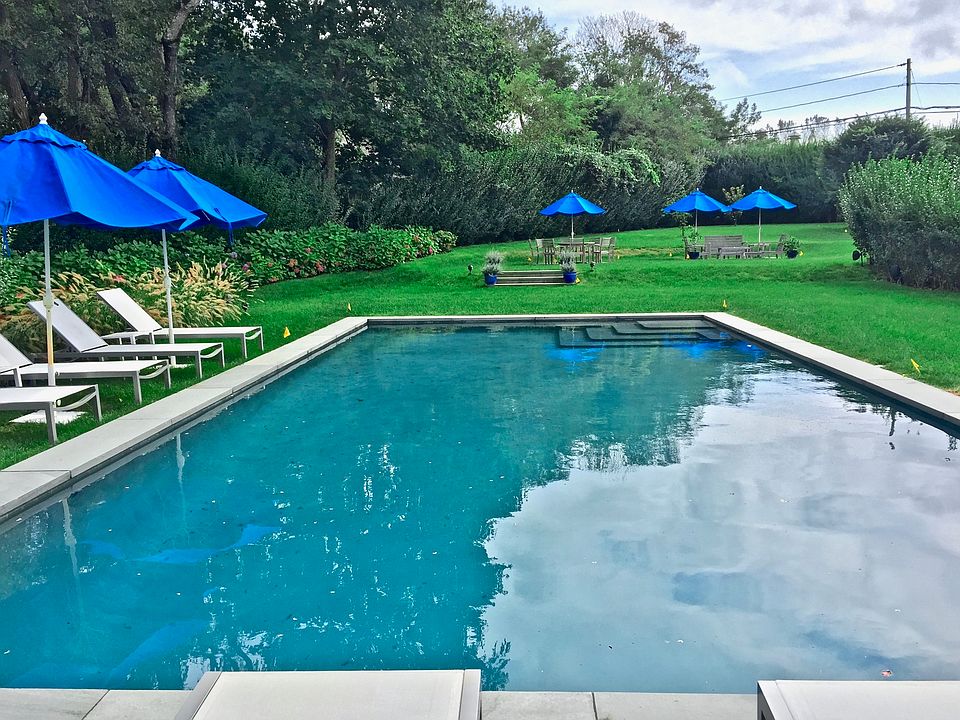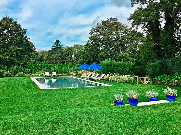 This truly special, 5 bedroom, 4.5 bath, barn style home in Water Mill is the perfect private retreat. Relax in the pool nestled on 1.5 acres of lush green lawns and surrounded by mature trees and landscaping. Inside is a beautiful chef's kitchen with lots of counter space and cabinets. Dine next to a two-sided fireplace or retreat into the cozy living room. The 1st floor also has a master ensuite and guest bedroom ensuite. The 2nd floor which has 3 bedrooms, another family room, reading nook, and walkout balcony is flooded with lots of natural light from all the skylights. This charming home is a must see!