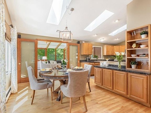 Look at how open and spacious this floor plan is in this impressive custom-built split level home set back on a .67 acre corner lot near the Burlington line. Pride of ownership shines through this builders own home with plenty of room for the whole family. The main level of this meticulously cared for home has cathedral ceilings, fireplaced living room, sky-lighted dining room & kitchen, a gorgeous Lindal Cedar 4 season sunroom, 3 bedrooms including master with ensuite and an updated low maintainence trex deck for outdoor enjoyment. Lower level with radiant heat throughout has a spacious family room with bay window and walkout to backyard, rough plumbing in wall if want to add in law kitchenette, 2 add'l bedrooms, full bath and plenty of storage. Anderson windows, 5 year old gas heating system, Irrigation system, .Central AC, Central vac hookup, Detached garage and much more. See link to 3D Tour. Masks and gloves required